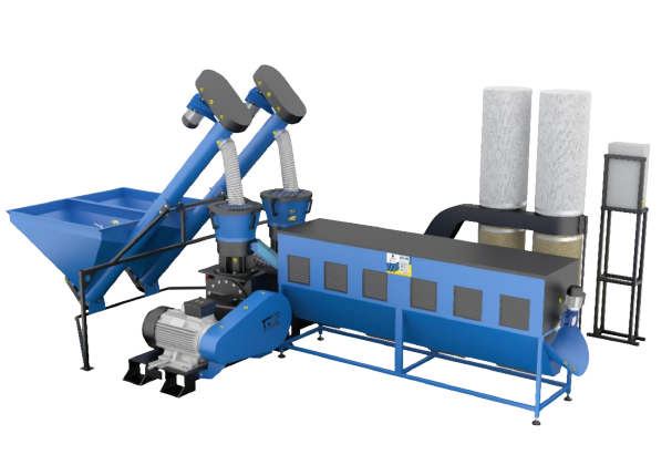 • Closed extraction system SO-315: The device, with the help of a fan, provides the circulation of air necessary for cooling pellets and placing dust in special dust collection bags. 1.5 kW power.
